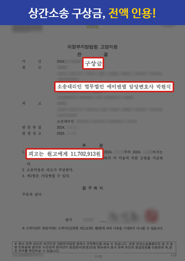이와 같은 변호인의 노력으로, 서울중앙지방법원은 원고가 의뢰인에게 청구한 상간 위자료 5,000만 원 전액을 기각하는 판결을 내려주었습니다.