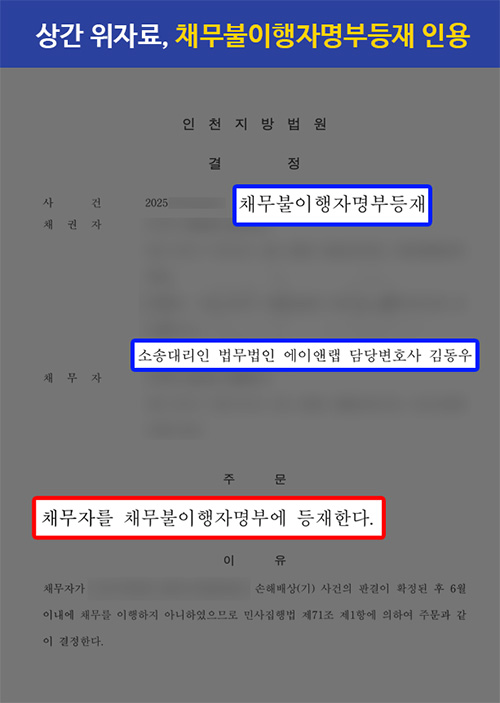 마지막으로, 김동우 변호사는 C씨가 반환 의사를 보이지 않고 연락을 피하고 있는 점에 착안해, 의뢰인의 손해에 대한 현실적인 회복을 위해 신속히 가압류를 신청하였습니다.