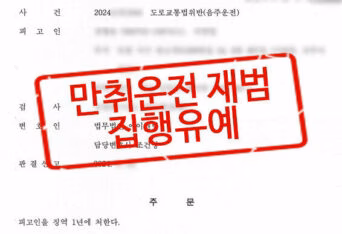 단기간 음주운전 재범, 만취수준 혈중알코올농도에도 집행유예 이끌어내