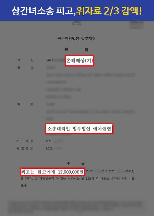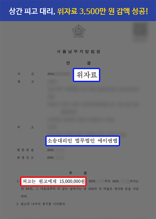 그 결과, 사건을 담당한 서울남부지방법원에서는 이러한 김동우 변호사의 주장을 인정하여 위자료를 3,500만 원 감액한 1,500만 원만 지급하라는 판결을 내려주었습니다.