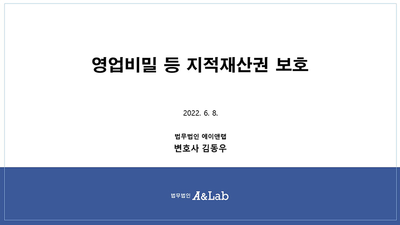 김동우 변호사는 강의를 통해 영업비밀과 산업기술의 차이점에 대해 설명하고, 영업비밀의 성립요건 및 영업비밀침해 형사사건의 특성에 대해 자세히 설명하였습니다.