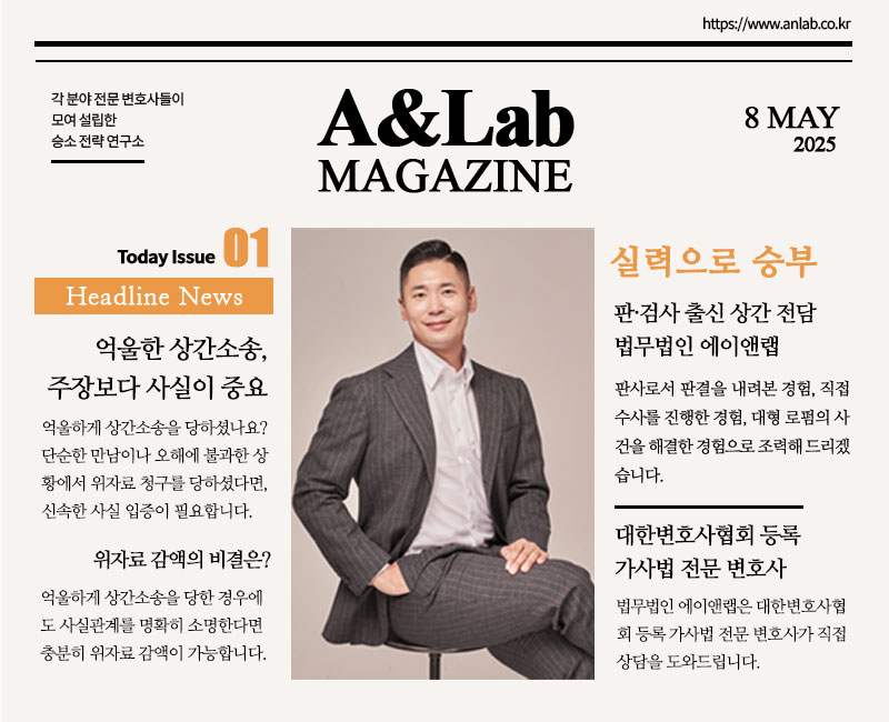 그러나 해당 여성의 남편은 이 만남을 부정행위로 단정하며, A 씨에게 5,000만 원의 위자료를 청구하는 상간소송을 제기했다. A 씨는 부정행위가 전혀 없었다는 입장을 유지하며, 억울함을 안고 법무법인 에이앤랩을 찾아 대응에 나섰다.